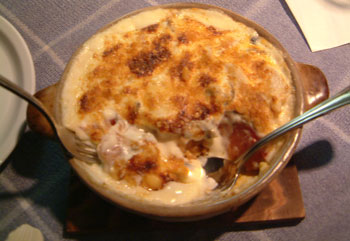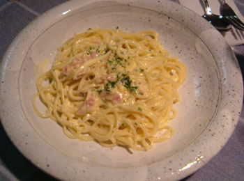 右下は油子(あぶらこ)のお料理です。赤ワインソースで仕上げてもらいました。アイナメのような感じです。 そのほか鶏肉のドリア、チーズフォンデュのようなおつまみetc...をいただきましたが、私にとってこの日の最大のヒットはカルボナーラでした。今まで食べたクリーム系パスタの中で間違いなくNo.1に輝いた一皿でした。 |