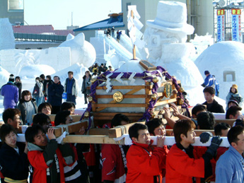 流氷みこしをかついでいます。 漁の神様、かどうかはわかりません。 |
