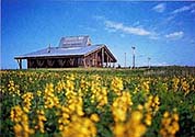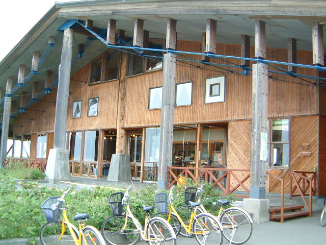 ワッカ原生花園のセンターハウス。休憩所を兼ねた建物の中には付近の自然や原生植物のパネルの展示をしている。自然保護のため自動車、バイクはセンターから先は入ることができない。ワッカ原生花園を周る馬車や自転車のレンタルあり。 |