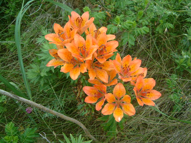 エゾスカシユリです。ワッカの写真のページにも書きましたが花を上から見ると下が透けて見えます。 年齢を重ねると花が増えていくと父が言っていましたが本当でしょうか。そうだとしたらこの花はいったい何歳なのでしょう。 |